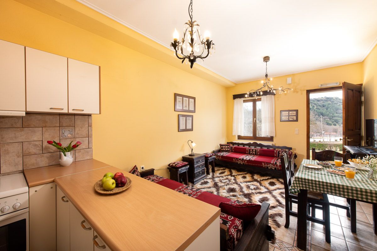 Experience the charm of traditional hospitality in our cozy One-Bedroom Apartment, an inviting retreat nestled in the heart of Karpenisi. Designed to accommodate up to four guests, this apartment blends rustic elegance with modern comfort.